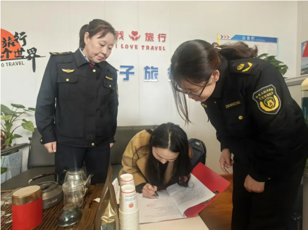 县文化市场综合行政执法人员结合日常执法检查,深入旅行社、网吧、KTV、营业性演出场所等文旅经营场所,向文旅企业宣讲《文化和旅游市场信用管理规定》《甘肃省优化营商环境条例》《娱乐场所管理条例》、《互联网上网管理条例》等相关法律法规,并耐心解读信用体系建设政策、失信联合惩戒案例等内容。通过实际案例的分析,让大家深刻认识到诚信经营的重要性以及失信行为可能带来的严重后果,警示相关企业,自觉履行消费维权主体责任和法定义务,持续提升经营者诚信守法意识,并与企业签订了《文旅企业诚信经营承诺书》。倡导企业自觉抵制虚假宣传,杜绝价格欺诈、强制消费等不诚信经营行为,模拟“低价团陷阱”等场景,教群众识别旅游消费骗局,倡导广大消费者抵制 “不合理低价游” 等,共筑行业诚信防线。